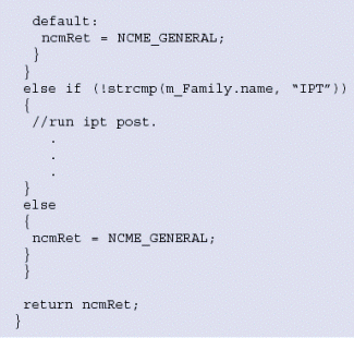 。。當(dāng)系統(tǒng)檢測到一個外圍設(shè)備板卡時,建議您在該設(shè)備上執(zhí)行POST以保證硬件功能良好。系統(tǒng)版提供了POST工具,可以基于硬件類型和它屬于的產(chǎn)品系列被單獨(dú)執(zhí)行。圖6例證了這個功能是如何完成的。代碼snippet是系統(tǒng)版應(yīng)用實(shí)例pfmanager的一部分。