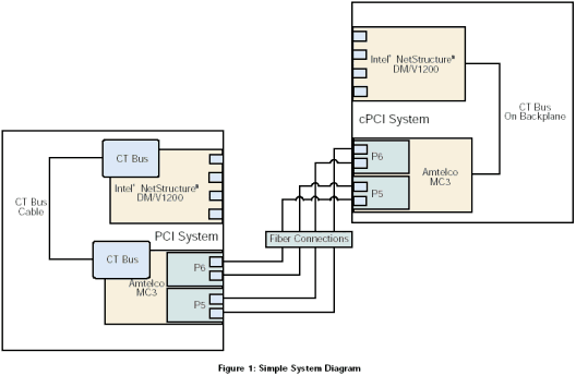 基于Windows操作系統(tǒng)的Dialogic® 系統(tǒng)5.1.1發(fā)布版本特征包1軟件允許通過CT總線多個板卡共享資源。然而,Dialogic卻沒有提供跨服務器共享CT總線的機制,實現(xiàn)這種功能需要一種可以跨服務器進行CT總線連接。其中一個可行的解決方案是使用Amtelco