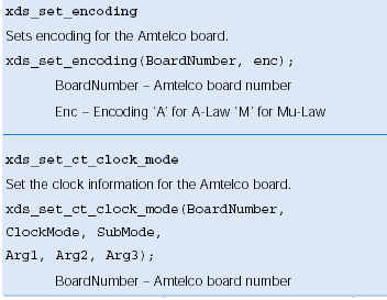 使用xds_mc3_connect、xds_mc3_listen、and xds_h100_listen函數(shù)分配由Amtelco卡使用的時隙,xds_mc3_connect在光纖環(huán)路和CT總線之間創(chuàng)建一個全雙工連接,所有的參數(shù)都可以在Amtelco板上得到。CT總線傳輸?shù)膮?shù)是Amtelco卡將要傳給CT總線CT的。
